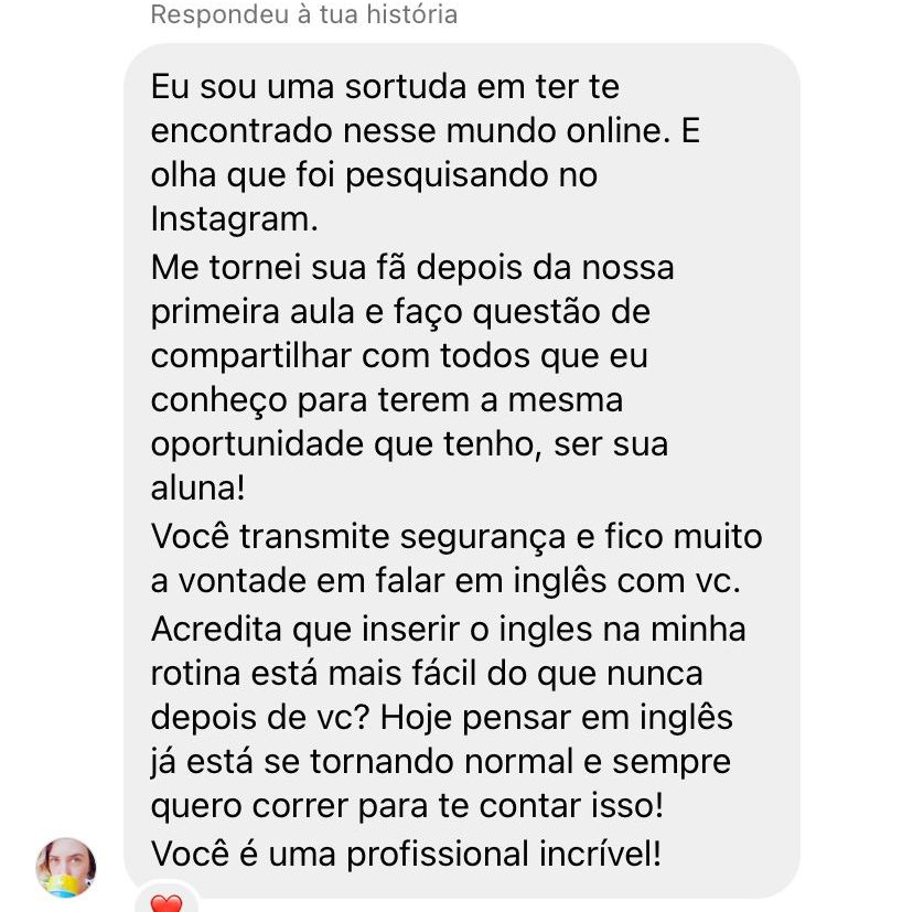 Há 5 anos, me dedico exclusivamente ao ensino de inglês para mulheres que já estudaram, mas ainda se sentem inseguras ou travadas para falar.