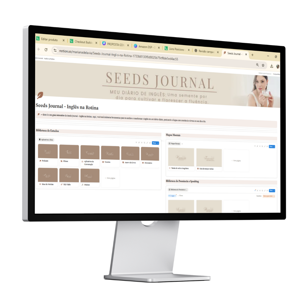 O Seeds Journal nasceu para acabar com a bagunça mental do “não sei o que estudar” e transformar o inglês em um hábito leve, constante e real.